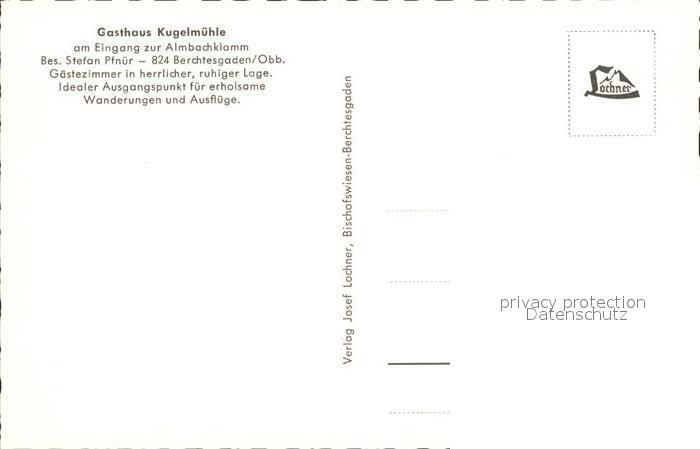 72017518 BERCHTESGADEN Bayern Gasthaus zur Kugelmuehle Almbachklamm postalisch nicht gelaufen KatCode: 11110009172116