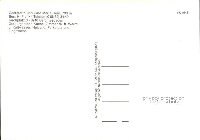 72512675 BERCHTESGADEN Bayern Gaststaette Cafe Maria Gern Kirche postalisch nicht gelaufen Erhaltung siehe scans KatCode: 11110009172116