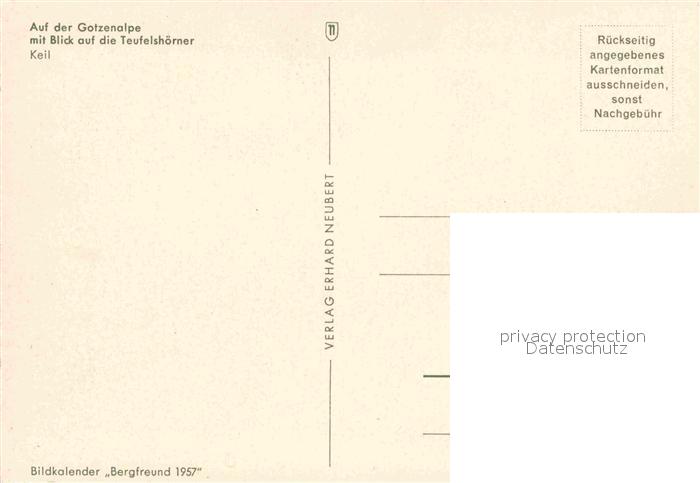72678538 BERCHTESGADEN Bayern Gotzenalpe mit Blick auf die Teufelshoerner Bildkalender Bergfreund 1957 postalisch nicht gelaufen Erhaltung siehe scans [FriedD77] KatCode: 11110009172116