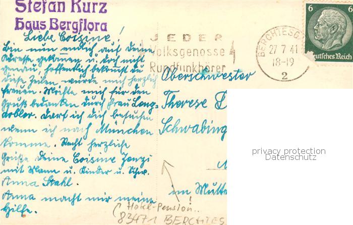 73792392 BERCHTESGADEN Bayern Haus Bergflora-Aussenansicht u. Berchtesgaden m. Untersberg postalisch gelaufen Erhaltung siehe scans [LiesaD40] alte Postkarte Lies Katcode 11110009172116