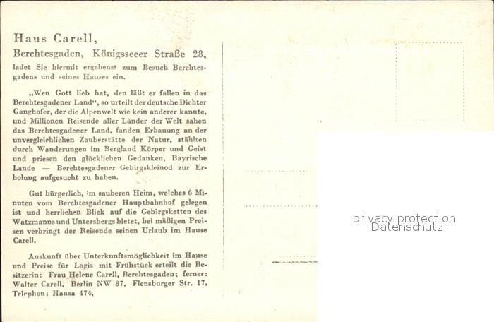 72102247 BERCHTESGADEN Bayern Haus Carell Ortsansicht postalisch nicht gelaufen KatCode: 11110009172116