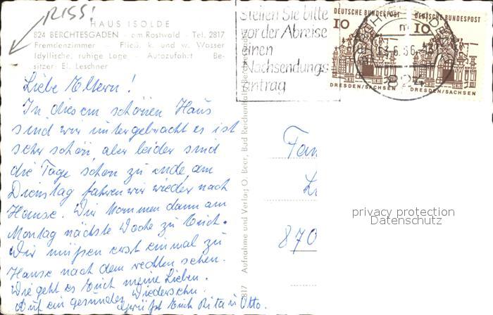 72464014 alte Postkarte BERCHTESGADEN Bayern Haus Isolde postalisch gelaufen Erhaltung siehe scans KatCode: 11110009172116