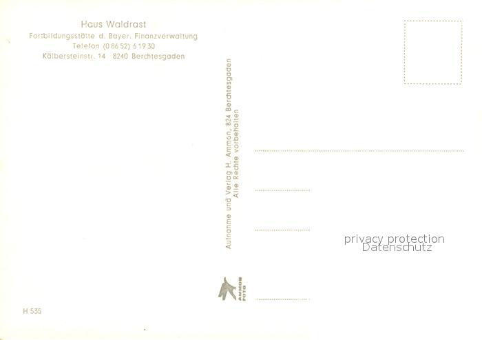 73720506 BERCHTESGADEN Bayern Haus Waldrast Fortbildungsstaette der Bayerischen Finanzverwaltung Alpen postalisch nicht gelaufen Erhaltung siehe scans [FriedD77] Frie Katcode 11110009172116