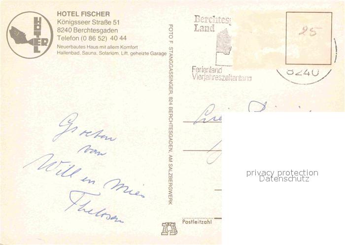 72729790 alte Postkarte BERCHTESGADEN Bayern Hotel Fischer postalisch gelaufen Erhaltung siehe scans [AndreD76] KatCode: 11110009172116