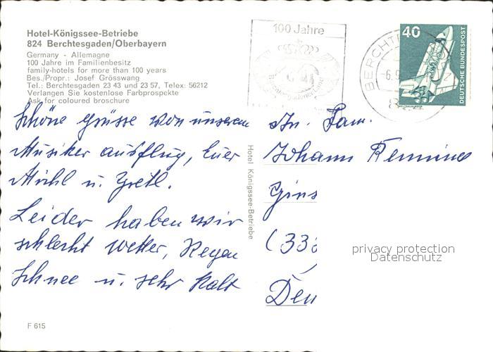 72062610 alte Postkarte BERCHTESGADEN Bayern Hotel Koenigsee-Betriebe postalisch gelaufen Erhaltung siehe scans KatCode: 11110009172116