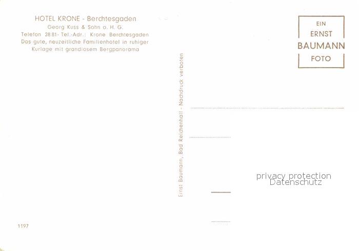 72755561 BERCHTESGADEN Bayern Hotel Krone postalisch nicht gelaufen Erhaltung siehe scans [WerneD78] KatCode: 11110009172116