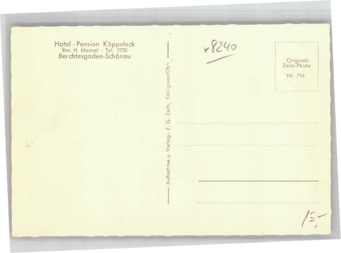 40754540 BERCHTESGADEN Bayern Hotel Pension Koeppeleck postalisch nicht gelaufen Alte Ansichtskarte Postkarte Katcode 11110009172116