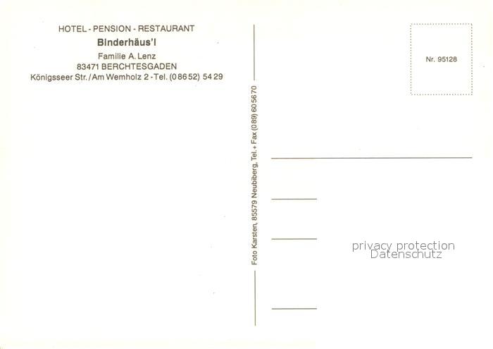 73660430 BERCHTESGADEN Bayern Hotel Pension Restaurant Binderhaeus l Alpenblick postalisch nicht gelaufen Erhaltung siehe scans [FriedD77] Frie Katcode 11110009172116