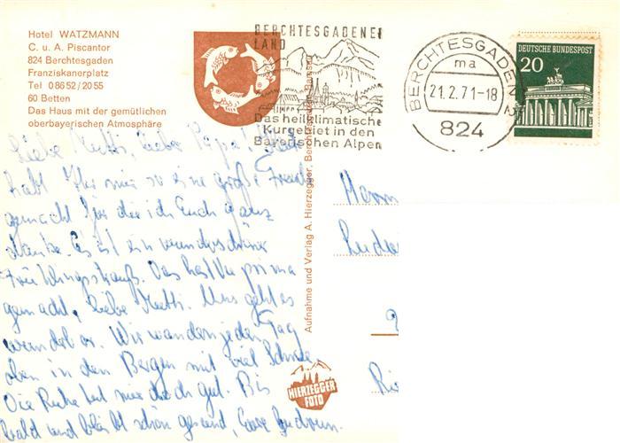 73917780 BERCHTESGADEN Bayern Hotel Watzmann Gastraeume postalisch gelaufen Erhaltung siehe scans [FriedD77] alte Postkarte Frie Katcode 11110009172116
