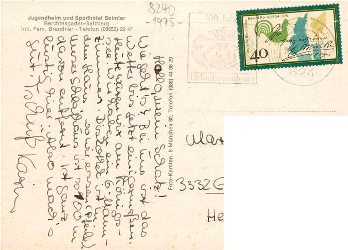 73913409 BERCHTESGADEN Bayern Jugendheim Sporthotel Seimler Gastraum postalisch gelaufen Erhaltung siehe scans [FriedD77] alte Postkarte Frie Katcode 11110009172116