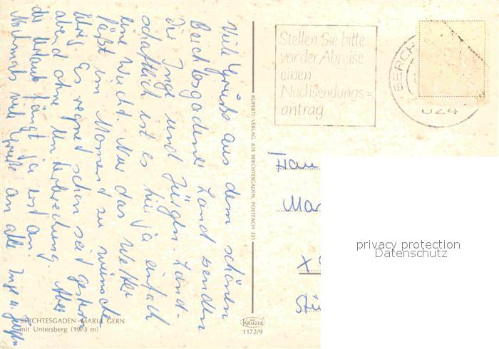 72617463 alte Postkarte BERCHTESGADEN Bayern Kirche Maria Gern mit Untersberg postalisch gelaufen Erhaltung siehe scans [WerneD78] KatCode: 11110009172116