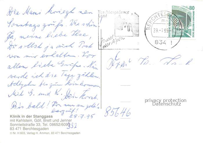 BERCHTESGADEN Bayern Klinik in der Stanggass mit Kehlstein Goell Brett und Jenner postalisch gelaufen Erhaltung siehe scans [WerneD78] alte Postkarte Wern Katcode 11110009172116