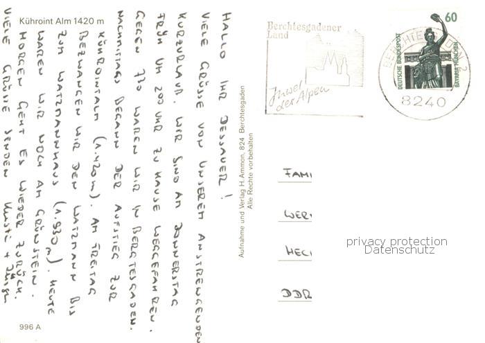 73751600 BERCHTESGADEN Bayern Kuehroint Alm mit Kl und Gr Watzmann Terrasse postalisch nicht gelaufen Erhaltung siehe scans [WerneD78] Wern Katcode 11110009172116