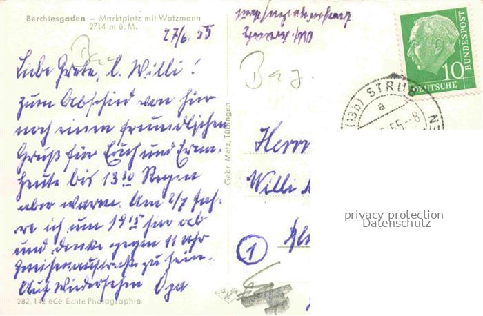 74040467 BERCHTESGADEN Bayern Marktplatz mit Blick gegen Watzmann postalisch gelaufen Erhaltung siehe scans [FriedD77] alte Postkarte Frie Katcode 11110009172116