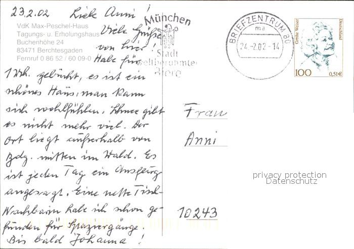 72257811 alte Postkarte BERCHTESGADEN Bayern Max Peschel Haus Tagungshaus Erholungshaus postalisch gelaufen Erhaltung siehe scans KatCode: 11110009172116