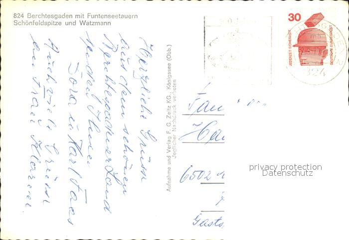 72510931 alte Postkarte BERCHTESGADEN Bayern mit Funtenseetauern Schoenfeldspitze und Watzmann postalisch gelaufen Erhaltung siehe scans KatCode: 11110009172116