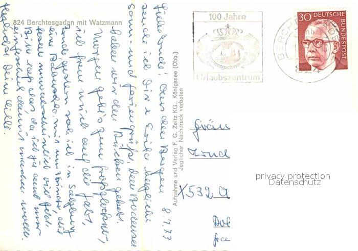 72724903 alte Postkarte BERCHTESGADEN Bayern Ortspartie mit Watzmann postalisch gelaufen Erhaltung siehe scans [LiesaD40] KatCode: 11110009172116