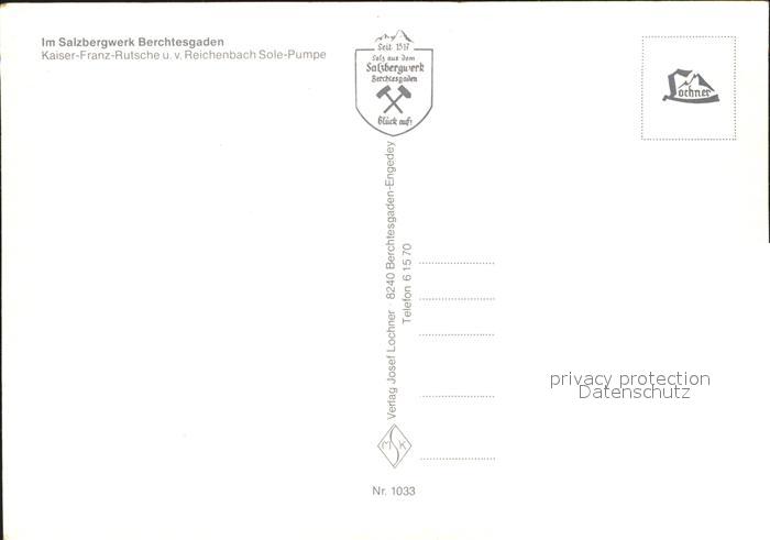 71928826 BERCHTESGADEN Bayern Salzbergwerk Kaiser Franz Rutsche Reichenbach Sole Pumpe postalisch nicht gelaufen Erhaltung siehe scans KatCode: 11110009172116