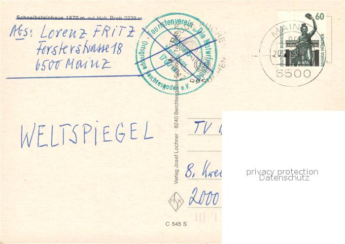 73721141 BERCHTESGADEN Bayern Schneibsteinhaus mit Hohe Breit postalisch gelaufen Erhaltung siehe scans [WerneD78] alte Postkarte Wern Katcode 11110009172116