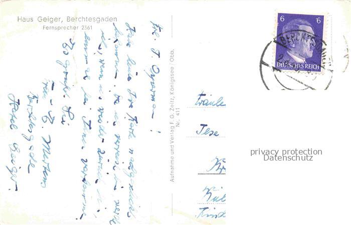 34144582 alte Postkarte BERCHTESGADEN Bayern Teilansicht mit Haus Geiger Gaestehaus Hotel postalisch gelaufen Erhaltung siehe scans [FriedD77] KatCode: 11110009172116