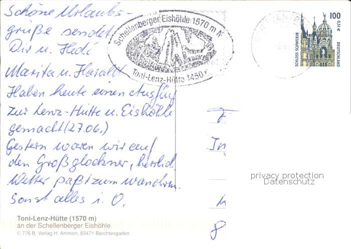 72076790 alte Postkarte BERCHTESGADEN Bayern Toni Lenz Huette Schellenberger Eishoehle postalisch gelaufen Erhaltung siehe scans KatCode: 11110009172116