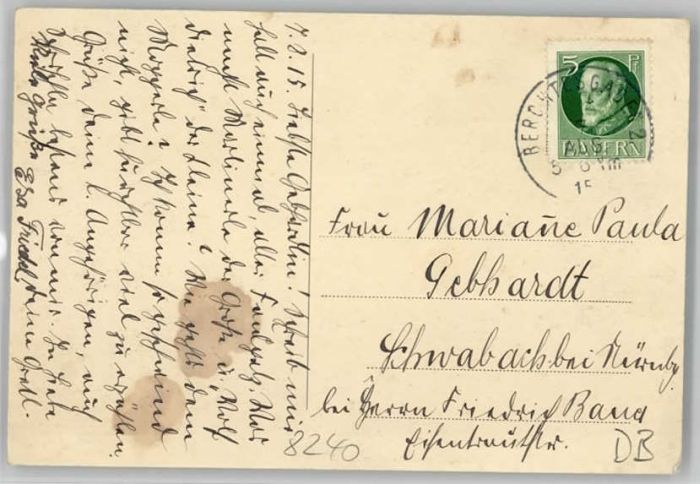40215556 BERCHTESGADEN Bayern x 1915 postalisch gelaufen Alte Ansichtskarte Postkarte alte Postkarte Katcode 11110009172116