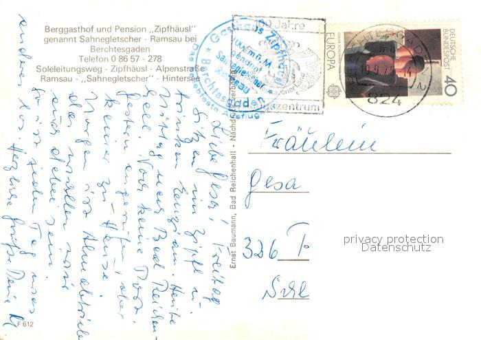 73093702 alte Postkarte Berchtesgaden Berggasthof Zipfhaeusl postalisch gelaufen Erhaltung siehe scans [NatalD47] KatCode: 11110009172116