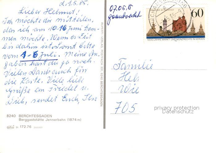 72987681 alte Postkarte Berchtesgaden Berggaststaette Jennerbahn postalisch gelaufen Erhaltung siehe scans [LiesaD40] KatCode: 11110009172116