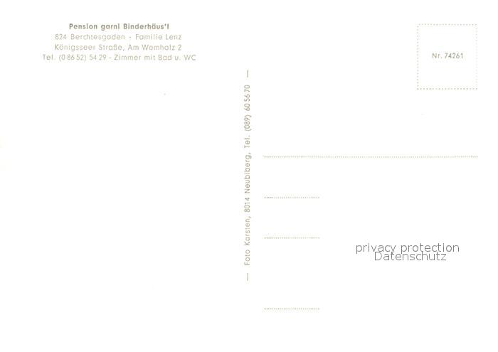 73334874 Berchtesgaden Binderhaeusl Pension postalisch nicht gelaufen Erhaltung siehe scans [LiesaD40] KatCode: 11110009172116