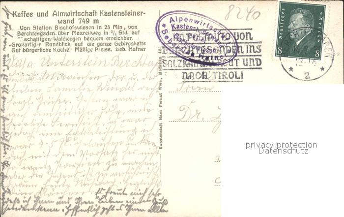 31821366 alte Postkarte Berchtesgaden Cafe Restaurant Kastensteiner Wand postalisch gelaufen Erhaltung siehe scans KatCode: 11110009172116