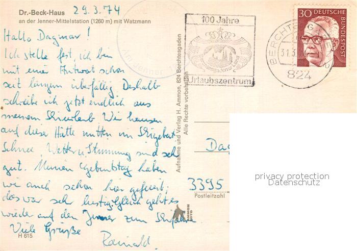72959788 alte Postkarte Berchtesgaden Dr Beck Haus mit Watzmann postalisch gelaufen Erhaltung siehe scans [WerneD78] KatCode: 11110009172116