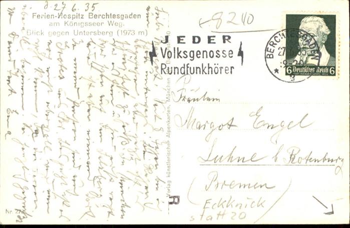 70941367 alte Postkarte Berchtesgaden Ferien-Hospitz Untersberg postalisch gelaufen KatCode: 11110009172116