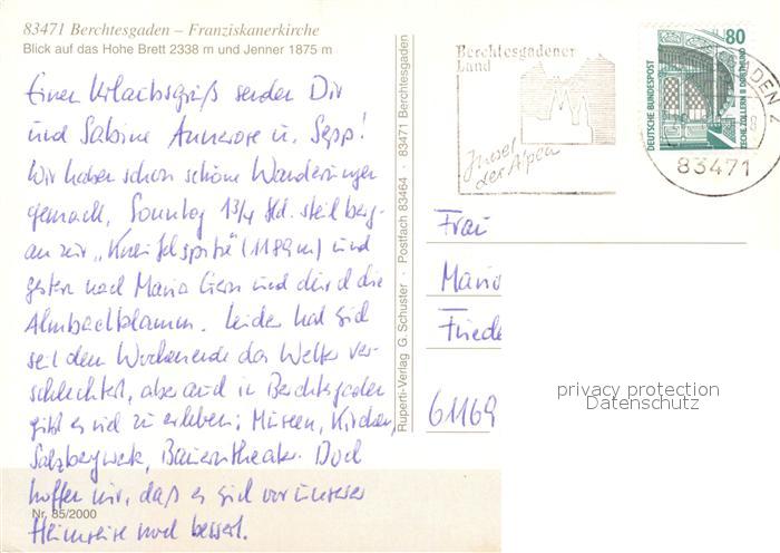 73224584 alte Postkarte Berchtesgaden Franziskanerkirche postalisch gelaufen Erhaltung siehe scans [KathaD81] KatCode: 11110009172116