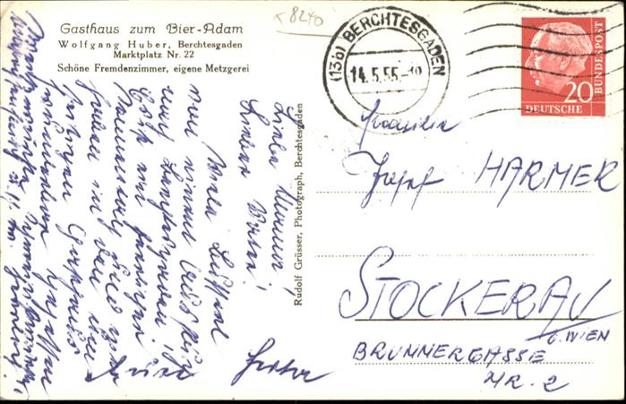 70941384 alte Postkarte Berchtesgaden Gasthaus zum Bier-Adam postalisch gelaufen KatCode: 11110009172116