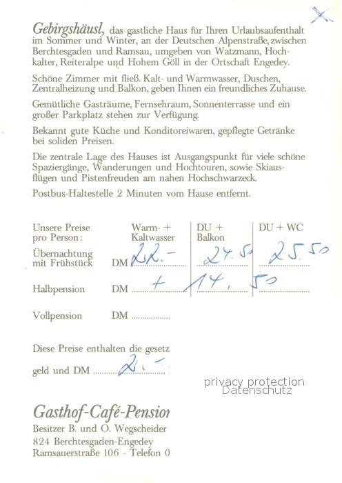 73615170 Berchtesgaden Gasthof Cafe Pension Gebirgshaeusl Gaststube Watzmann postalisch nicht gelaufen Werbekarte (keine Postkarte) Erhaltung siehe scans [WerneD78] KatCode: 11110009172116