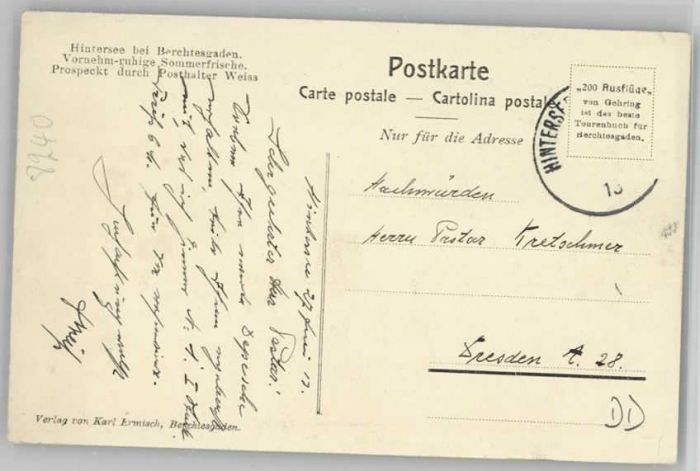 40215657 Berchtesgaden Gasthof Post Hintersee x 1910 KatCode 11110009172116