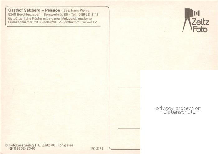 73570055 Berchtesgaden Gasthof Salzberg Restaurant postalisch nicht gelaufen Erhaltung siehe scans [FriedD77] KatCode: 11110009172116