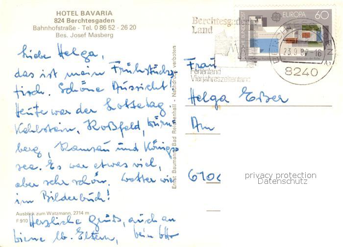73101127 alte Postkarte Berchtesgaden Hotel Bavaria postalisch gelaufen Erhaltung siehe scans [WerneD78] KatCode: 11110009172116