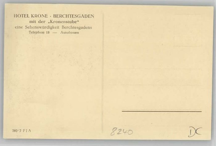 40215728 Berchtesgaden Hotel Krone ungelaufen ca. 1920 KatCode 11110009172116