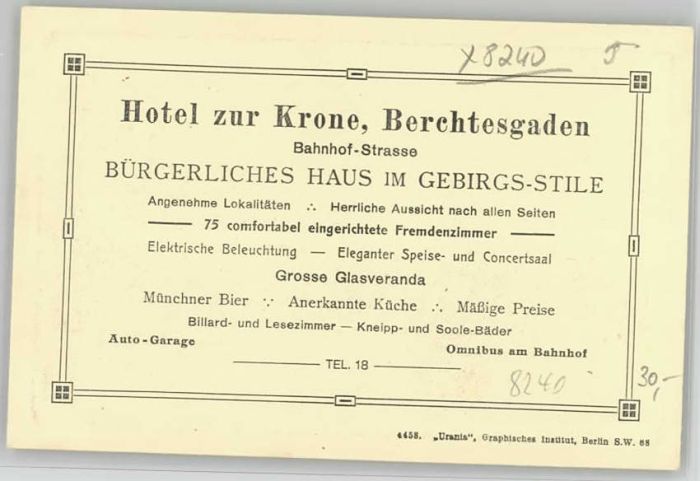 40217059 Berchtesgaden Hotel Krone ungelaufen ca. 1920 KatCode 11110009172116
