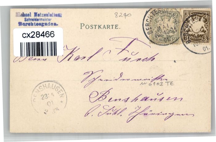 30910471 alte Postkarte Berchtesgaden Hotel Post zum Leuthaus postalisch gelaufen KatCode: 11110009172116