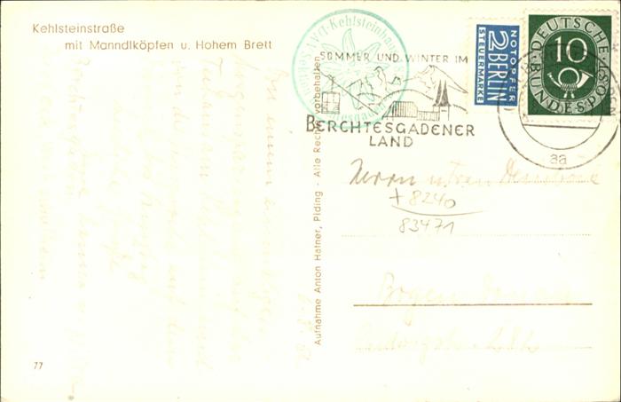 70941378 alte Postkarte Berchtesgaden Kehlsteinstrasse Manndlkoepfen Hohem Brett postalisch gelaufen KatCode: 11110009172116