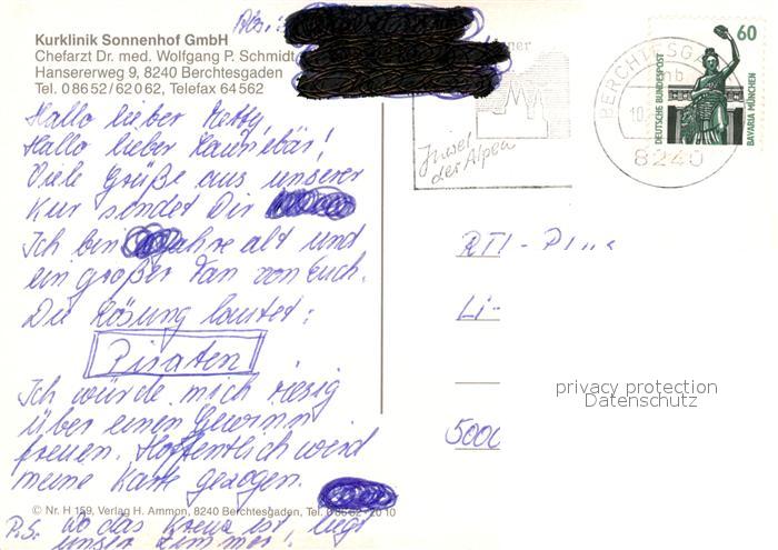 73129430 alte Postkarte Berchtesgaden Kurklinik Sonnenhof postalisch gelaufen Erhaltung siehe scans [PaolaD17] KatCode: 11110009172116