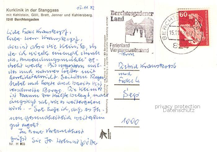 73013549 alte Postkarte Berchtesgaden Kurklinik Stanggass Kehlstein Goell Jenner postalisch gelaufen Erhaltung siehe scans [NatalD47] KatCode: 11110009172116