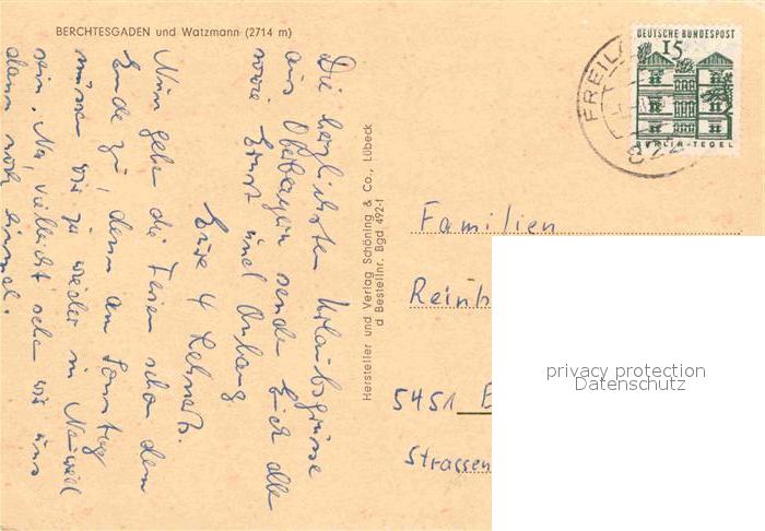 72890663 alte Postkarte Berchtesgaden mit Watzman postalisch gelaufen Erhaltung siehe scans [WerneD78] KatCode: 11110009172116