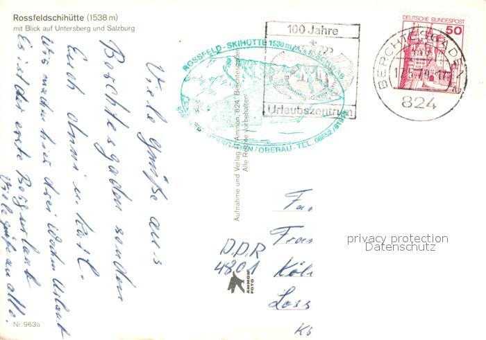 73517185 alte Postkarte Berchtesgaden Rossfeld Schihuette Blick auf Untersberg und Salzburg postalisch gelaufen Erhaltung siehe scans [FriedD77] KatCode: 11110009172116