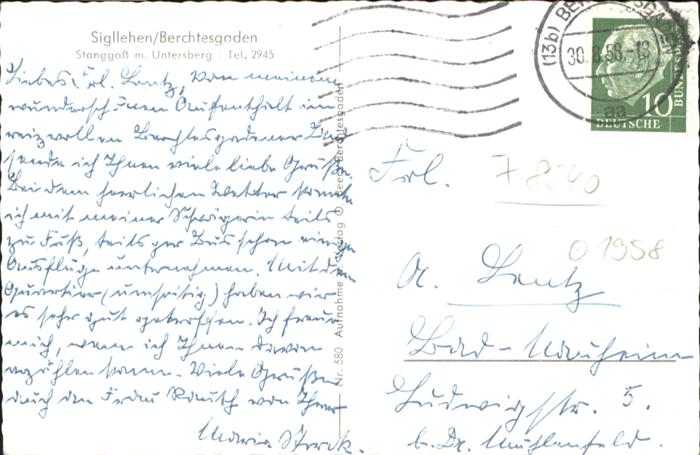 70941201 alte Postkarte Berchtesgaden Sigllehen Stanggass Untersberg postalisch gelaufen KatCode: 11110009172116