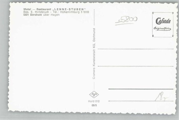 40684648 Berchum Motel Restaurant Lenne Stuben KatCode 11110005914000