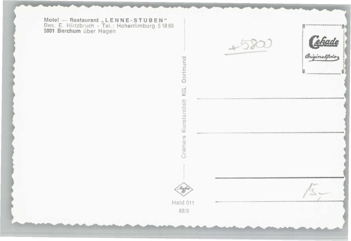 40684663 Berchum Motel Restaurant Lenne Stuben KatCode 11110005914000