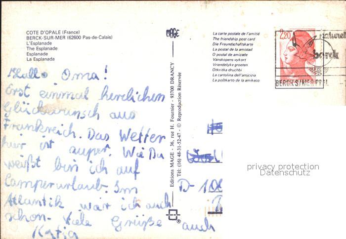 12601784 carte postale Berck Esplanade postalisch gelaufen Erhaltung siehe scans [LiesaD40] KatCode: 11170062462108